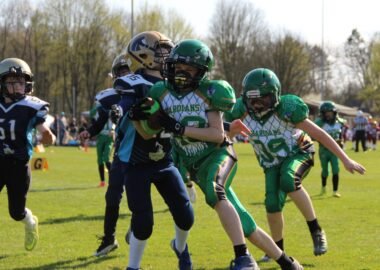 Bei uns spielen in den Jugendteams (U10, U13, U16) Jungs und Mädchen gemeinsam und völlig gleichberechtigt in einem Team. Du brauchst absolut keine Vorerfahrung, um bei uns anzufangen. Unsere lizenzierten Coaches bringen dir alles von der Pike auf bei – und das mit modernsten und sichersten Trainingsmethoden (USA Football “Heads Up” Standard).