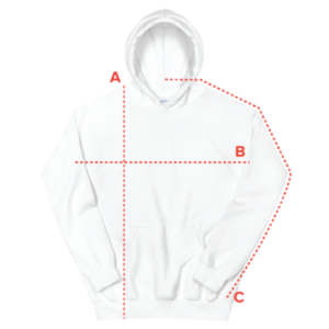 A LängePlatziere das Ende des Bandes neben dem Kragen am oberen Ende des T-Shirts (Höchster Punkt Schulter). Ziehe das Maßband bis zum unteren Ende des Shirts. B BreiteLege das Ende des Bandes an der Naht unter dem Ärmel an und ziehe das Maßband über das Shirt bis zur Naht unter dem gegenüberliegenden Ärmel. C ÄrmellängePlatziere das Ende des Bandes in der Mitte hinten am Kragen und ziehe dann das Maßband entlang der oberen Naht des Ärmels. Wenn du an der Schulter angelangt bist, halte das Band an der Schulter fest und ziehe den Ärmel weiter nach unten, bis du den Saum des Ärmels erreicht hast. |